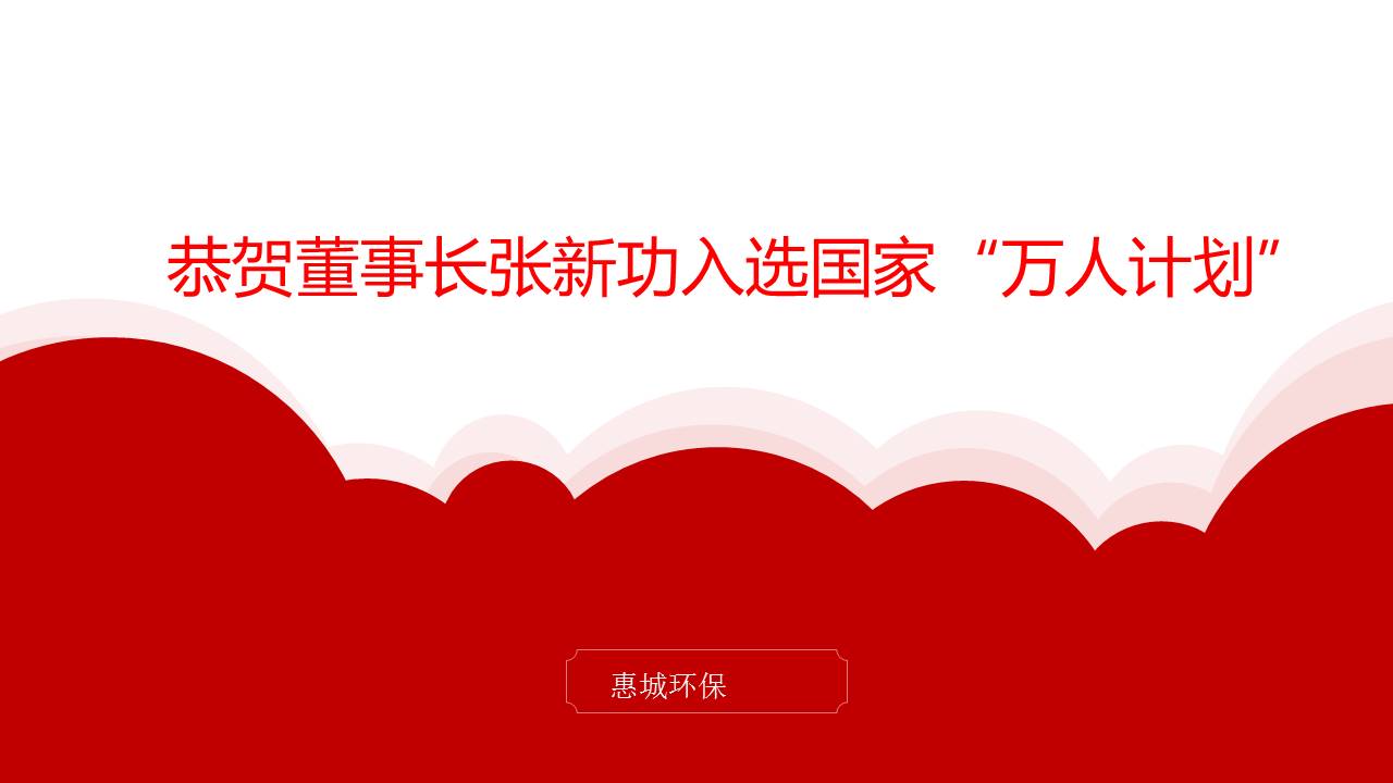 日前,中组部公示第二批国家“万人计划”领军人才人选,青岛惠城环保科技股份有限公司张新功董事长获得“科技创业领军人才”荣誉称号,全国仅336人获此殊荣。[ 查看更多 ]