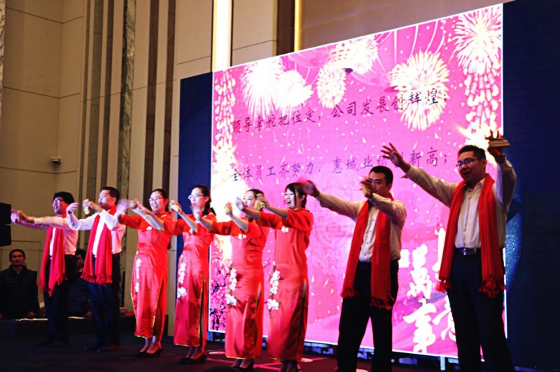 场年会在欢乐、感动的氛围中圆满落下帷幕,全体惠城伙伴将心手相连,共同创造更加辉煌的2017年。