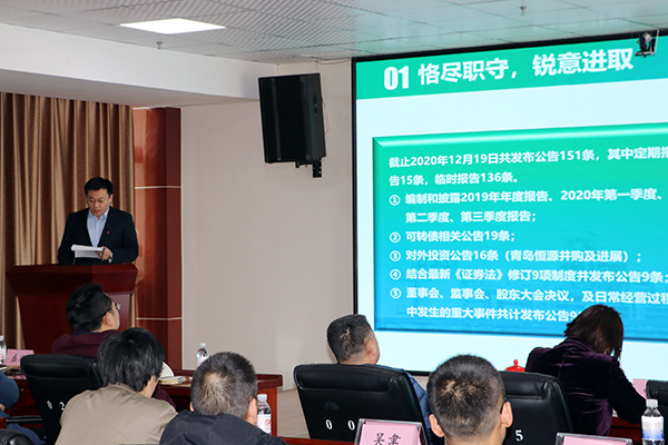 全面、准确、客观地评价公司中高层干部履职尽责情况,进一步加强公司人才梯队建设,2020年12月26日-12月28日,公司中高层干部述职报告会在研发中心418会议室举行。公司董事长张新功、总经理李正及其他中高层管理干部、控股及参股公司委派的负责人参加了会议。